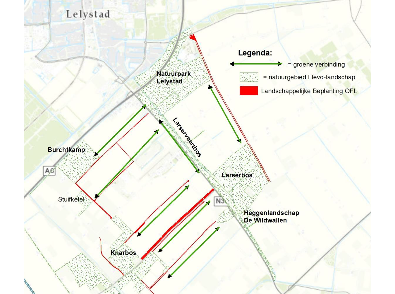 Aan de Knarweg-noord, tegen het Knarbos aan, staat niet zomaar een rij bomen. Deze dubbele bomenrij is onderdeel van de landschappelijke beplanting van Oostelijke Flevoland en onderdeel van belangrijke ecologische verbindingen tussen verschillende natuurgebieden. Via smalle stroken groen zijn zo het Knarbos, het Wilgenreservaat en de Burchtkamp met elkaar verbonden.